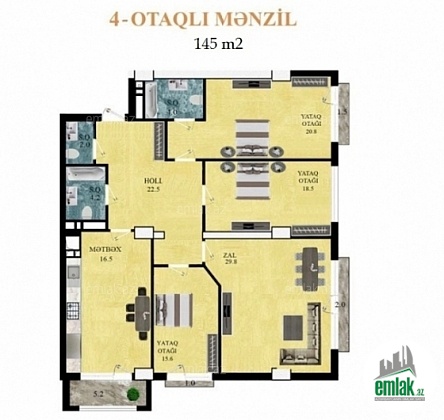 Ümumi sahəsi 145 kv.m. olan