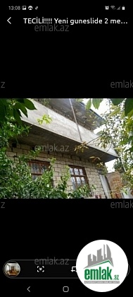 TECİLİ!!!! Yeni guneslide 2 mertebəli həyət evi! Bartərdə mümkündü!! Ev 2sotun içində tikilib.Orta remontludur.Kombi sistemi,daimi suyu,qazı,isigi və internet xətti var.Sənədi yoxdur.Amma 2003de tikildiyi üçün Prezidentin fərmanı ilə senedlesmeye cəlb olunacaq evlər sırasındadır.Yola yaxındır.Dayanacaqdan 50 metr məsafədədir. Evin alti uzun qarajdi hal hazirda kiraye ucun duzedilib kiraye verirlib. Barterde mumkundur