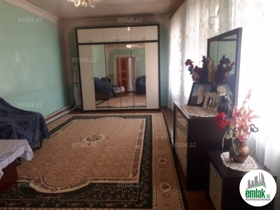 yoldan 100 metr arali,6 sot torpaqda tikilmiş,6 daş kürsülü,120 kv.m.4 otaqlı,əla təmirli ev.Ev əşyalarla bir yerdə satılir(soyuducu,paltaryuyan maşın,...