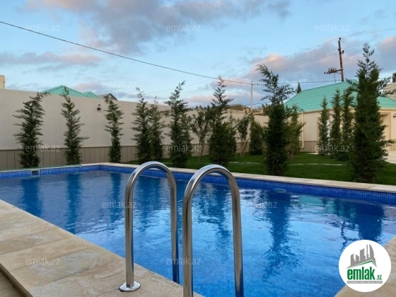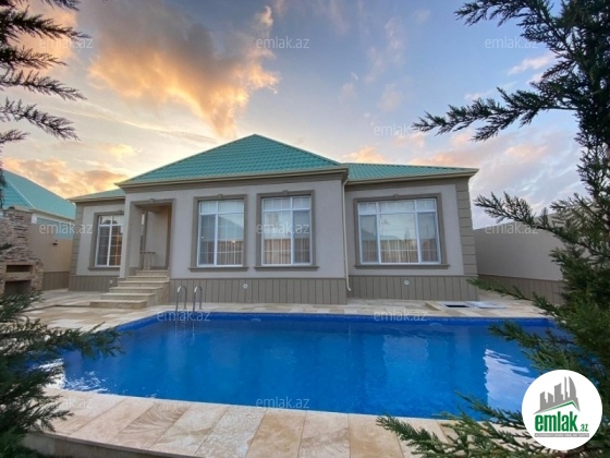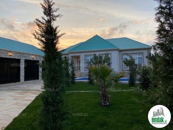 Mərdəkan qesebesinde 9 sotun içinde inşa edilmiş umumi sahesi 250 kv-m olan 1 mertebeli 5 otaqli bağ evi satilir ! Evin tikintisində keyfiyyətli tikinti materiallarından istifadə edilmiş və çox səliqəli inşa edilmişdir.Heyetinde geniş filtirli hovuzu, bisetkasi , manqalnisi , yay mətbəxi, qarajı, dekorativ ve meyve aqaclari , sensorla olan gece isiqlari, sanitar qovsaqi var.Qazi , suyu , isiqi daimdir . Istilik sistemi kombidir . Senedleri qaydasindadir (KUPCA) .