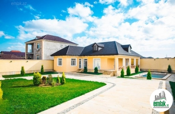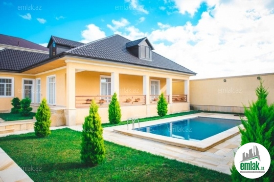 Merdekan qesebesi 12 sotda insa edilmis 1 mertebe+mansard bag evi satilir.Umumi sahesi 310 kv.m dir.Bag sahesinde filtrli baseyn,besedka,dekorativ agaclar vardir.Bag evinin 3iwigli yataq otagi,1geniw qonaq otagi,geniw metbex,2hamam ve sanitar qovwagi vardir.Qazi,suyu ve isigi daimidir.Senedleri tam qaydasindadir (KUPÇA)