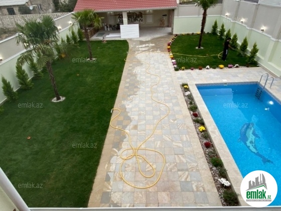 Merdekan qesebesinde ARZU restoranının yaxınlığında yerləşən yeni inşa edilmiş yola yaxin 6 sot torpaq sahesinde insa edilmis 2 mertebeli bag evi satilir.Umumi sahesi 260 kvm olan bu bagin 1 ci mertebesinde 1 zal , 1 yataq otagi ,1 metbexi , 1 sanuzeli, 2 ci mertebesinde 4 yataq otagi , 2 sanzuel, qarderob movcuddur.Heyetinde geniş filtirli hovuzu, bisetkasi ,manqalni, dekorativ aqaclari , sensorla olan gece isiqlari, sanitar qovsagi var.Darvaza pultla idarə olunur.Qazi, isigi, suyu daimidir. Senedler tam qaydasindadir. (Kupça)