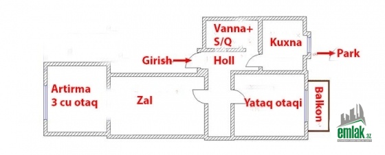 2 otaqlı +otag boyda Yani 3 otaq kimi istifade oluna bilen Balkon Artirma.