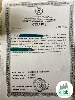 Mərtəbə: 2/2   Sənədin tipi: Çıxarış (Kupça)