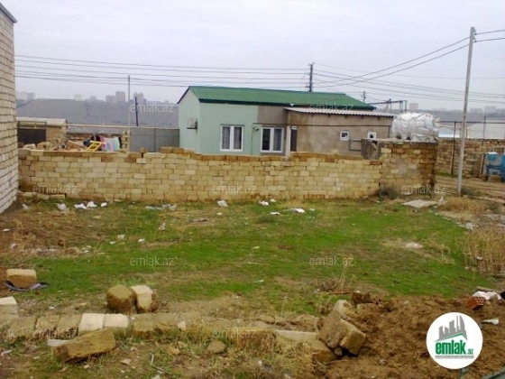 Həyətin 4 tərəfi kubik hasar ilə bağlıdır. Giriş qapısı qoyulmayıb. Həyətdə 2mərtəbəli evin 1ci mərtəbəsi tikilib. Layihə modern dizayna uyğun işlənib. 2 ci mərtəbəyə aid olan hörgü üçün kərpiclər dam örtüyü ləvazimatlar...