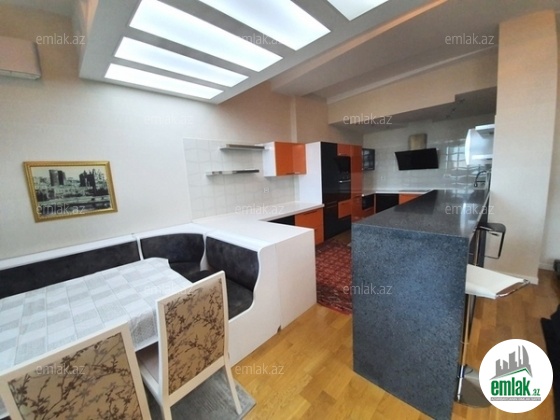 Xətai rayonu, Megafun əyləncə mərkəzininin üstü, tam yaşayışlı yeni tikilidə 3 otaqlı mənzil kirayə verilir. Ümumi sahəsi 270 kv.m., 18 23. Dənizə gözəl mənzərəsi olan 3 açıq eyvanı. Əla təmirli, 2 s q, KATV, internet, 3 plazma tv, mərkəzi istilik və kondisioner sistemi. Quraşdırılmış mətbəx mebeli və texnikası. Mühafizə olunan həyəti, yeraltı qarajı var.