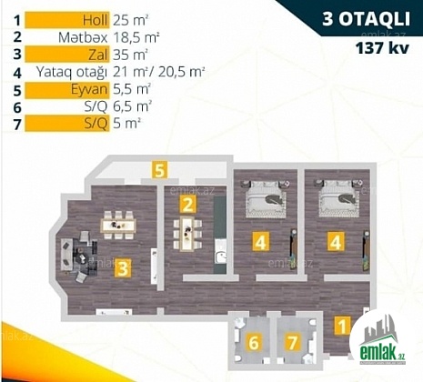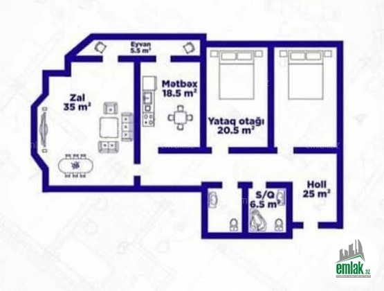 Ümumi sahə: 82 kv.m