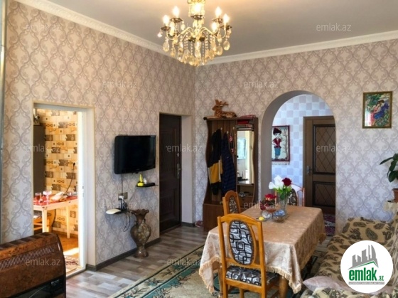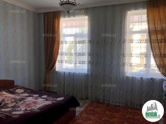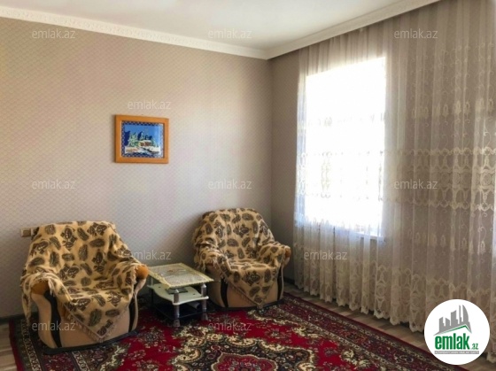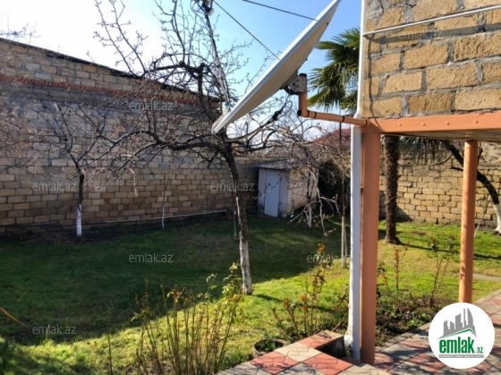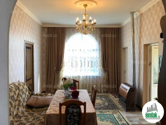 yoldan 100 metr arali,6 sot torpaqda tikilmiş,6 daş kürsülü,120 kv.m.4 otaqlı,əla təmirli ev.Ev əşyalarla bir yerdə satılir(soyuducu,paltaryuyan maşın,...