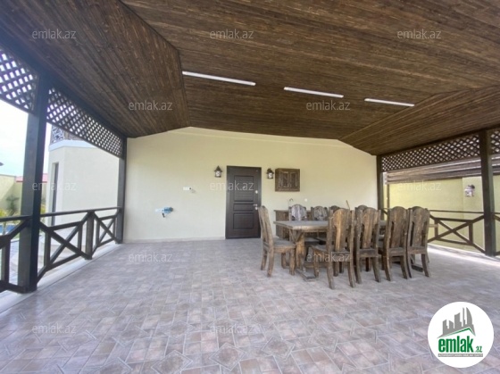Açıq eyvanı var.Baseyn,manqal,terast cam balkon.Mətbəx mebeli daxil.