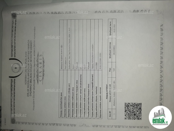 Mərtəbə: 8/9   Sənədin tipi: Çıxarış (Kupça)