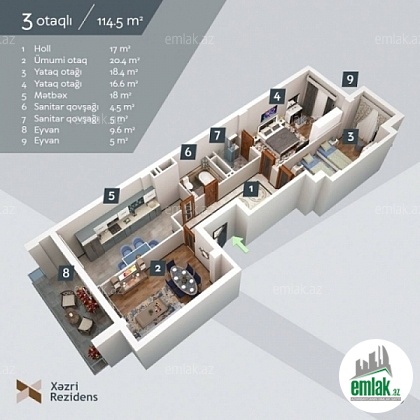 - Otaqların sayı3
