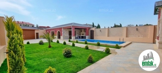 Merdekan qesebesinde Bravo marketin yaxinliginda 7 sotda insa edilmis 1 mertebeli bag evi satilir . Umumi sahesi 180 kvmdir.Bag evinin 3 yataq otagi,1 zal ,1 metbext ve 2 sanuzelden ibaretdir. Evin tikintisində keyfiyyətli tikinti materiallarından istifadə edilmiş və çox səliqəli inşa edilmişdir. Heyetinde geniş filtirli hovuzu, bisetkasi , manqalnisi , dekorativ ve meyve aqaclari , sensorla olan gece isiqlari, sanitar qovsaqi var.Qazi , suyu , isiqi daimdir . Istilik sistemi kombidir . Senedleri qaydasindadir (KUPCA) .