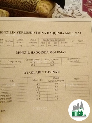 - 3 qanuni otaq və 2 balkon
