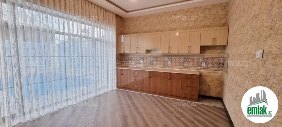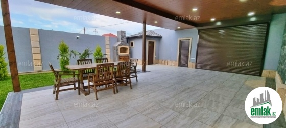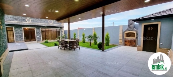 Açıq eyvanı var.Baseyn,manqal,terast cam balkon.Mətbəx mebeli daxil.