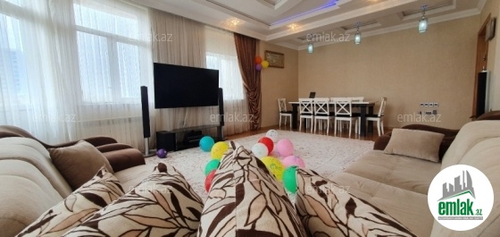 Xetai Park yashayish kompleksinde tam 4 otaqli (2 sanitar qovshagi ve Hamam otagi) yeni Ela temirli ve bezi es...