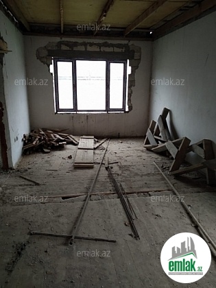 2 mertebe, mansarla. Yarimciq temirli heyet evi. Suyu, işigi, qazi, telefon xetti var. Hasara alinib. Kicik heyetyani sahesi var. Real aliciya endirim edilecek.