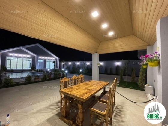 Açıq eyvanı var.Baseyn,manqal,terast cam balkon.Mətbəx mebeli daxil.