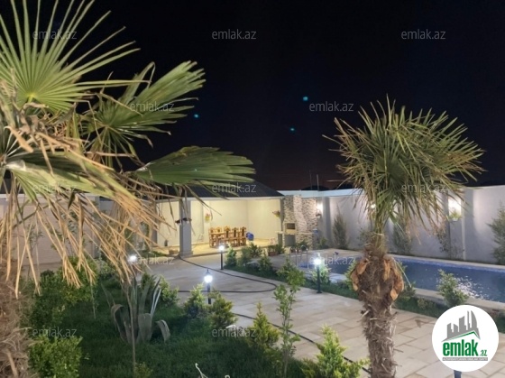Merdekan qəsəbəsində yola yaxın tam infrastrukturlu ve pristijli bir mekanda, 6sotda 1 mərtəbəli bağ evi satılır. Ümumi sahəsi 180kv.m olan bu bağda, 4 otaq var: 1genis qonaq otağı, 3 yataq otağı, mətbəx, xoll və 2s/qovsagi vardir.Heyetinde geniş filtirli hovuzu, bisetkasi ,manqalni, dekorativ ve meyve aqaclari , sensorla olan gece isiqlari, sanitar qovsagi var.Darvaza pultla idarə olunur.Evin tikintisində keyfiyyətli tikinti materiallarından istifadə edilmiş və çox səliqəli inşa edilmişdir.Qaz,su, işıq daimidir. Senedleri qaydasındadır (Kupca).