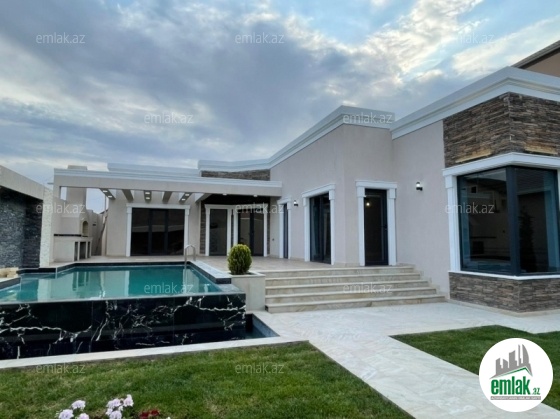 Merdekan qəsəbəsində QOŞA QALA rest yanı, 6 sotda modern üslubunda yeni inşa edilmiş 1 mərtəbəli bag evi satılır, əsas yolda 100 m icəridə, 180 kv.m 4 otaqlı bag evi satilir.Bag evi 3 yataq otağı, 1 qonaq otağı, mətbəx, holl və 3 sanuzeldən ibarətdir. Ev yüksək zövq və keyfiyyətlə təmir olunub. Su, qaz, işıq daimidir. İsti döşəməsi var. Həyətində filterli hovuz, besetka, manqalxana, qaraj, dekorativ ağacları və gülləri, yaşıllıq ərazisi, sanitar qovşaq, sensorlu gecə işıqları var.Yolu asfaltdır.Senedleri qaydasindadir. Çıxarışı)