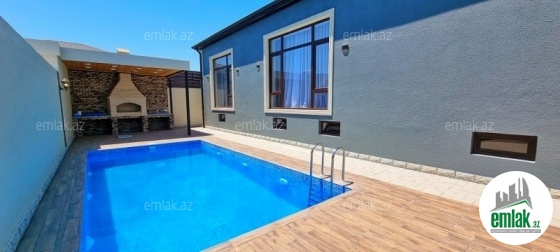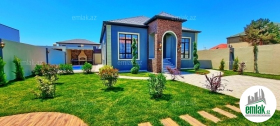 **RUFAT*AYNUR** Merdekan qes. körpünün yaxinliginda yerleşen 6 sotda modern üslubda yeni inşa edilmiş bag evi satılır, 170 kv.m, 1 zal, 3 yatag, 2 s/q evde ve 1 s/q heyetde, ela temirlidir, kombi istilik sistemi, heyetde filtirli hovuzu, besedka, manqal, qaz, su ve işıqı daimidir, 170 kv.m yarım zirzəmisi de var, orada sauna, sinema, və trenajor zalı və ss etmek mümkündür. Cıxarışı var. Bag yaşayiş massivinde yerleşir ve il boyunca yaşamaq ucun yararlidir. Yolu asvalt örtüklüdür.