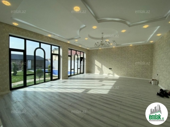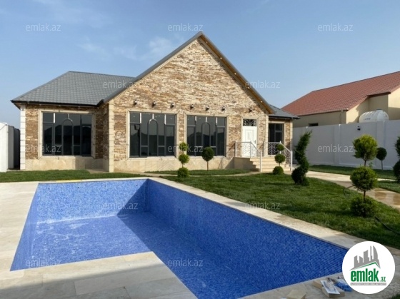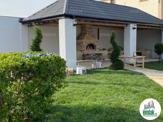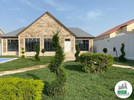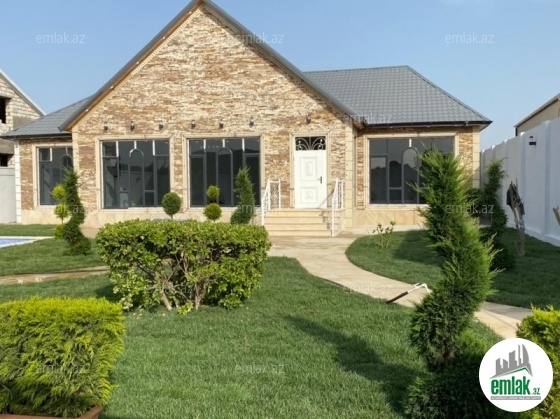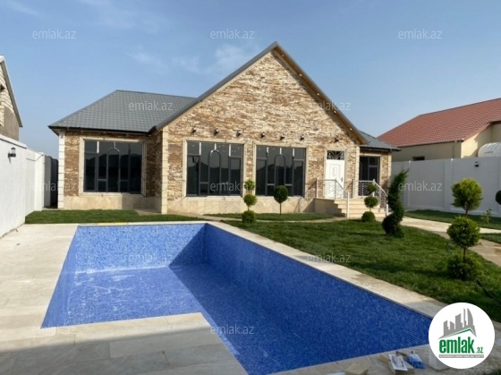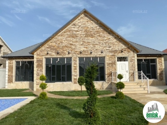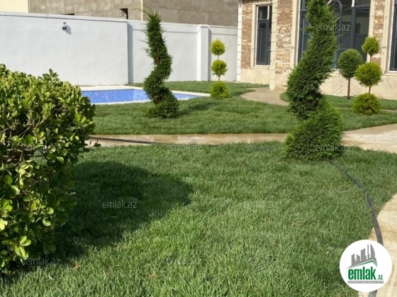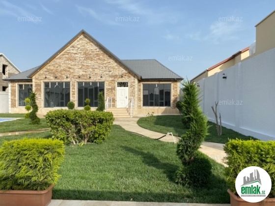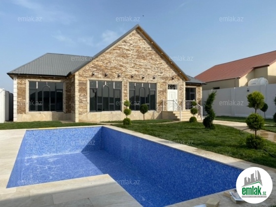 Merdekan qəsəbəsində 10 sotda yeni inşa edilmiş zövqlü 1 mərtəbəli bag evi satılır,Ümumi sahəsi 220kv.m olan bu bağda, 5 otaq var: 1genis qonaq otağı, 4yataq otağı, mətbəx, xoll və 3s/qovsagi vardir.Heyetinde geniş filtirli hovuzu, bisetkasi ,manqalni,qaraj, dekorativ aqaclari , sensorla olan gece isiqlari, sanitar qovsagi var.Darvaza pultla idarə olunur.Evin tikintisində keyfiyyətli tikinti materiallarından istifadə edilmiş və çox səliqəli inşa edilmişdir.Qaz,su, işıq daimidir. Yolu asvalt, həyətin qarşısında geniş parkovka mövcuddur. Senedleri qaydasındadır (Kupca).