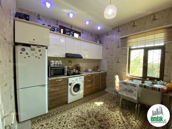 2 mərtəbəli 5 otaqlı bağ evi/villa satılır.Navastroyka stilində beton konustruksiya ilə tikilib.Şəxsi evimdi.İnşasinda ancaq xüsüsi seçilmiş keyfiyyətli materiallardan istifadə olunub.Əla növ parket,pultla idarə olunan həyət qapısı,oblisovka döşəmə. Qaz su işıq daimidir,istilik sistemi kombidir.Mətbəx,hamam, koridor isti pol ilə təchiz olunub.Evin yaxınlığında məktəb,uşaq bağçası, avtobus dayanacağı var.Həyətyanı sahəsində meyvə ağacları var.