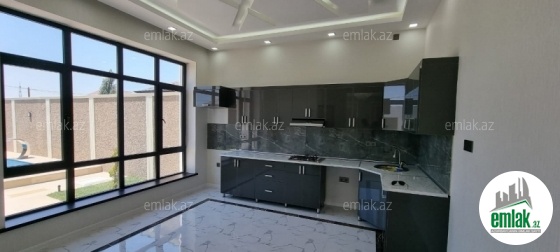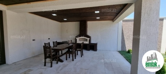 Açıq eyvanı var.Baseyn,manqal,terast cam balkon.Mətbəx mebeli daxil.