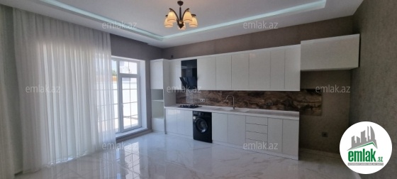Açıq eyvanı var.Baseyn,manqal,terast cam balkon.Mətbəx mebeli daxil.