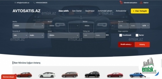TƏCİLİ FƏALİYYƏTDƏ OLAN HAZIR BİZNES SATILIR !! Azərbaycanda ilk dəfə 360° Avto foto studio biznes kimi satılır. Biznesə aiddir: 360° fırlanan platforma avadanlıq, Web sayt - http://www.avtosatis.az , rəsmi facebook səhifə, rəsmi instagram səhifə və rəsmi əlaqə üçün Bakcell nömrə. Qeyd edim ki, Web saytın hazırlanması və bu günkü vəziyyətə gəlməsi üçün 7 000 AZN-dən çox pul xərclənib və hal-hazırda da sayt işlək vəziyyətdədir. Biznes olaraq gəlir gətirə biləcək bir sahəyə aiddir. Əslində bu biznesin ərsəyə gəlməsi üçün 100 000 AZN-dən çox pul xərclənib. Sadəcə təcili olduğu üçün dəyərindən ucuza 30 000 AZN-ə satılır.