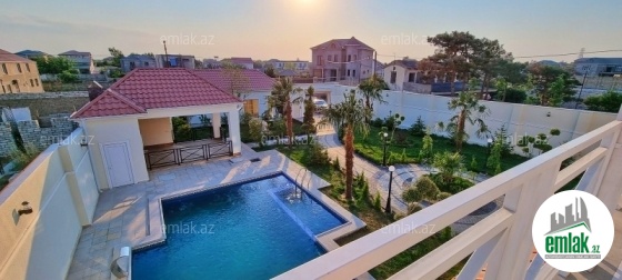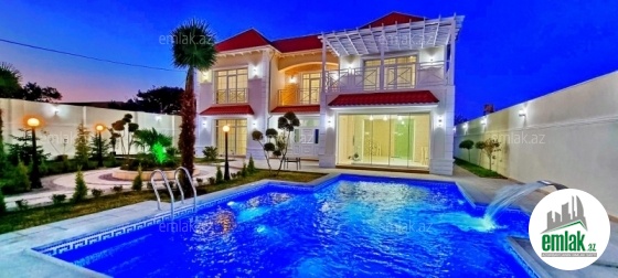 **RUFAT*AYNUR** Mərdəkan qəs. Əncirli də yerləşən VİLLA SİENA üslubunda yeni inşa edilmiş 2 mərtəbəli dəbdəbəli villa satılır, 10 sot, 340 kv.m, 1 zal, 4 yataq, 4 san/qovşağı, isti döşəməli, hündür tavan, zövqle temir edilib, kombi istilik sistemi, texniki otaq, həyətində filtirli geniş hovuzu, yay və qış mətbəxi manqalı ilə, texniki otaq, san/qovşaq, arxa həyətdə meyvə agacları qaraj, həmcinin yer alti su ambarı, icməli su xətti, qaz və işıq daimidir. Sənəd – tam cıxarış. Villa yaşayış massivində yerləşir və il boyunca yaşamaq ücün yararlıdır. Yolu asvalt örtüklüdür. Darvaza pultla idarə olunur.