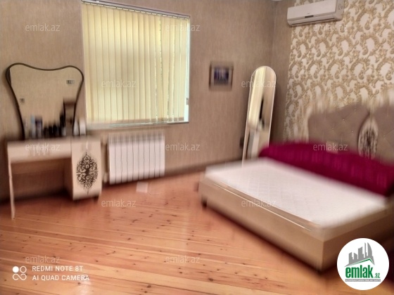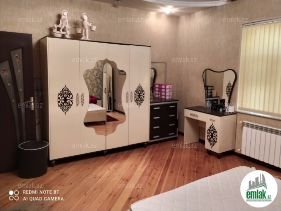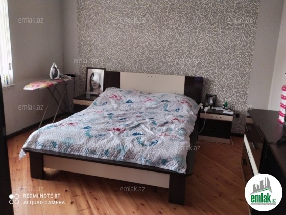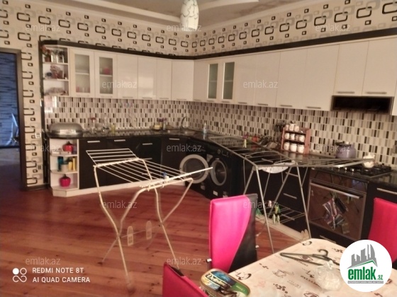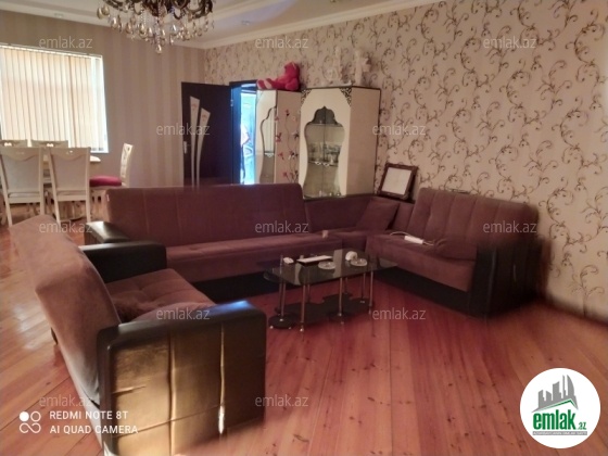 yoldan 100 metr arali,6 sot torpaqda tikilmiş,6 daş kürsülü,120 kv.m.4 otaqlı,əla təmirli ev.Ev əşyalarla bir yerdə satılir(soyuducu,paltaryuyan maşın,...