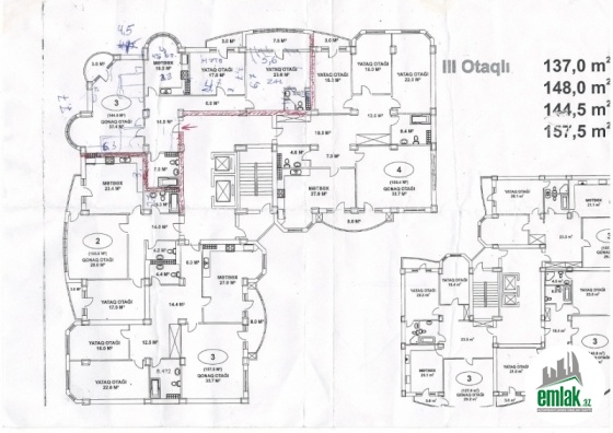 3 otaqlı, 140 kv.m mənzil satılır.