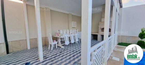 Açıq eyvanı var.Baseyn,manqal,terast cam balkon.Mətbəx mebeli daxil.