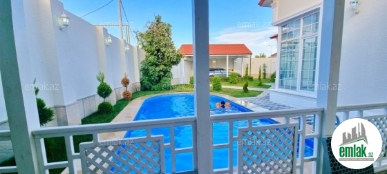 **RUFAT*AYNUR** Merdekan qes, Bravo marketin yanında, yoldan 50 metr mesafede yerleşen 4.5 sotda olan modern üslubunda yeni inşa edilmiş bağ evi satılır, yeni əşyalarla bəzədilib, 150 kv.m, 4 otaq, 2 san/q, isti döşəmə, kombi sistemi, həyətində filtirli hovuz, avto ucun ustu ortulu yer, 1 san/qovşağı, yolu asvalt, cıxarış (kupca)