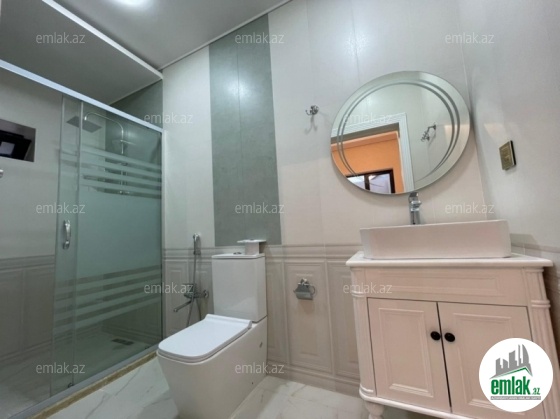 Açıq eyvanı var.Baseyn,manqal,terast cam balkon.Mətbəx mebeli daxil.