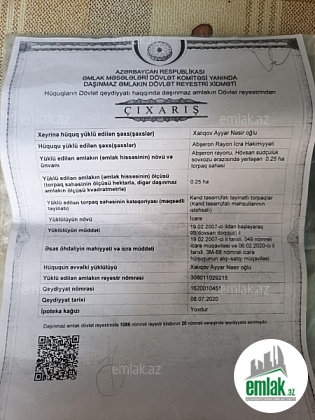 - Əmlakın növüTorpaq