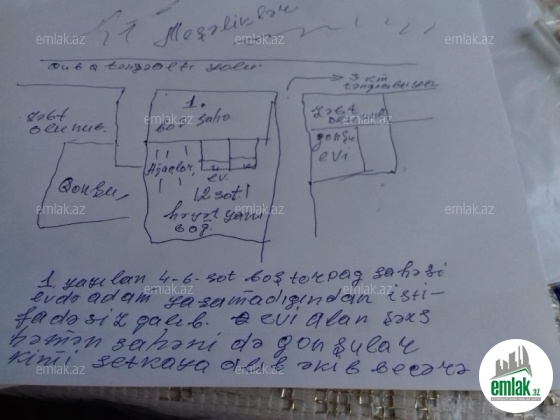 Təngəaltı istirahət yerine 3km məsafədə yerləşir.Həyatyanı sahə 12 sotdur Ondan əlavə evdə var.Şəkillərdən birində mülkədar sxem çəkərək izah etmişdir.Evi hasarlamaqda olar.