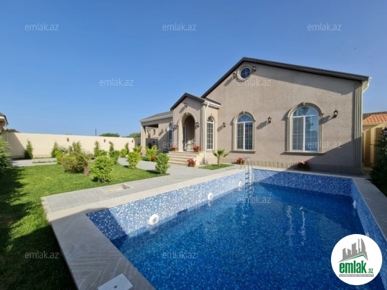 Xezer rayonu Merdekan qesebesi \'\' Bravo \'\' Qala yolunun ustu 4.5 sot torpaq sahesinde 1 mertebeli 185 kvm bag evi satılir. holl ,1 zal,metbext , 4 yataq otagi,2 sanuzeli movcuddur.Heyetinde hovuz,cambalkonlu bisetkas...