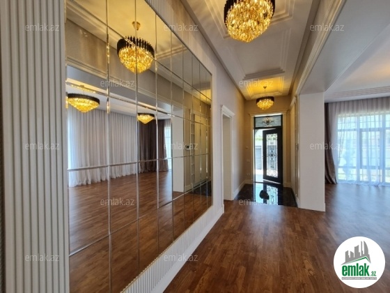 Ümumi sahəsi 180 kv olan ev 4 otaqlıdır. Bağ evinin döşəmə hissəsi parketdir . Qapılar və mətbəx mebeli standartdan kənar xüsusi sifarişlə yığılmışdır.