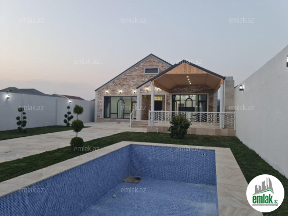 Mərdəkan Bravo Qala yolu yola yaxın 3 sotda 4 otaq 2 sanuzel 185.000₼ olan bu yeni modern bağ evini sizə təklif edirik, həyətində filterli hovuzu bisetkası mövcuddur sənəd çıxarış