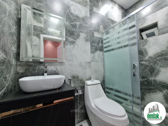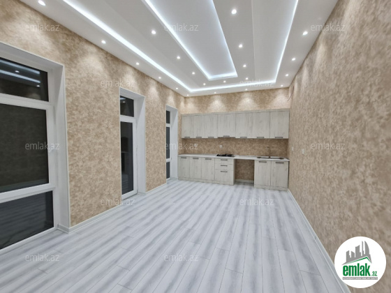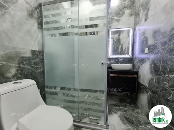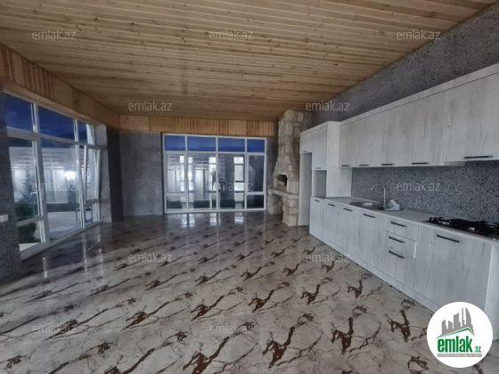 Açıq eyvanı var.Baseyn,manqal,terast cam balkon.Mətbəx mebeli daxil.