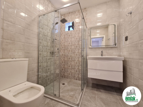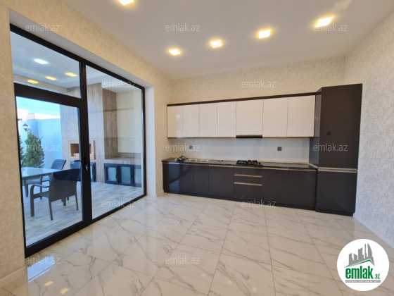 Açıq eyvanı var.Baseyn,manqal,terast cam balkon.Mətbəx mebeli daxil.