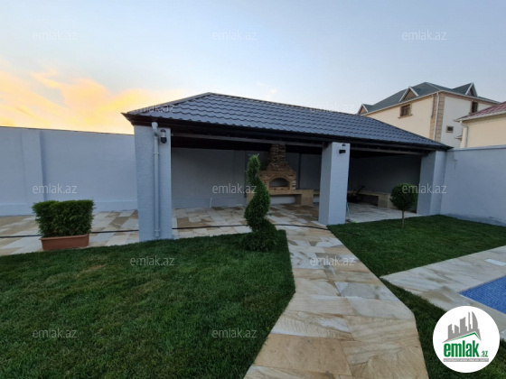 Mərdəkan Bravo Qala yolu yola yaxın 3 sotda 4 otaq 2 sanuzel 185.000₼ olan bu yeni modern bağ evini sizə təklif edirik, həyətində filterli hovuzu bisetkası mövcuddur sənəd çıxarış