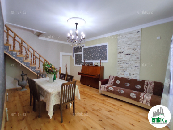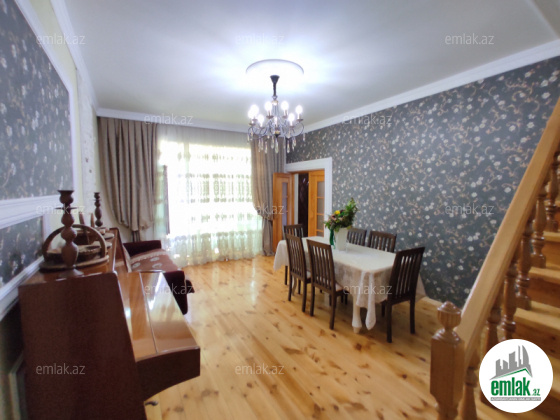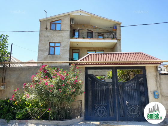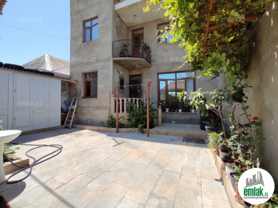 Torpaq sahəsi 1.5 sot, evin sahəsi 240 kv, 3 mərtəbəli, 8 otaqlıdır. Tam təmirlidir. Yolu asfalt, kanalizasiya sistemi mərkəzidir. Su, qaz, işıq daimi, istilik sistemi kombidir. Sənəd qeydiyyat yolu ilə. Qiymətdə razılaşmaq olar.