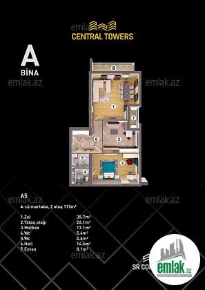 Yasamal rayonu, Mərkəzi Park yaxınlığında yerləşən Central Towers yaşayış kompleksinin 14-cü mərtəbəsində ümumi sahəsi 115 kvadrat metr olan 2 otaqlı təmirsiz mənzil satılır.
