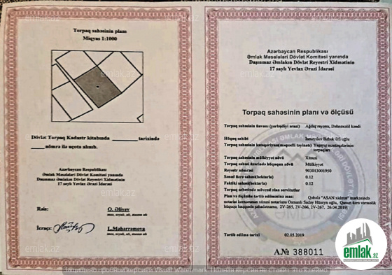 Daşınmaz əmlak sənədi: Reyestr xidmətindən torpağın çıxarışı (kupca)