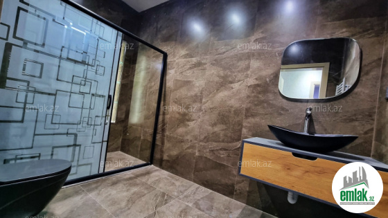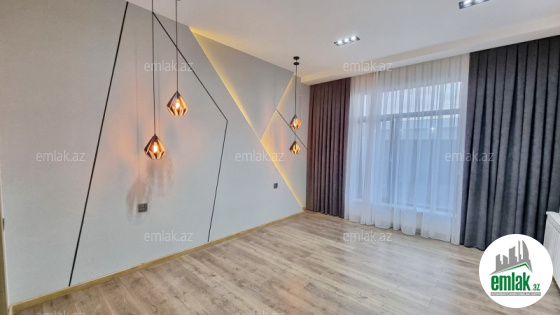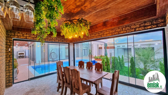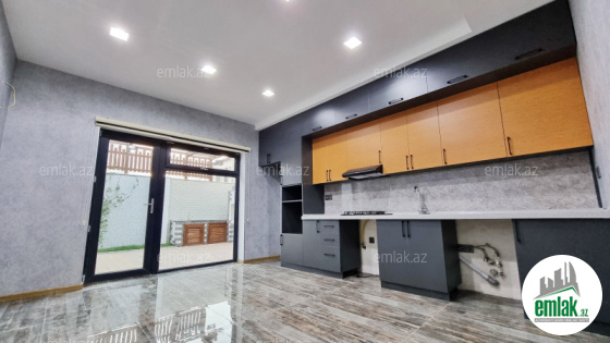 Açıq eyvanı var.Baseyn,manqal,terast cam balkon.Mətbəx mebeli daxil.