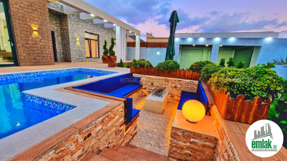 Filtirli hovuz, manqal, yay ve qış metbexi, besedka, avto ucun yer, jalyuz darvaza, istilik sistemi kombi, qaz, içməli su xətti, işıq. Çıxarış (kupça).
