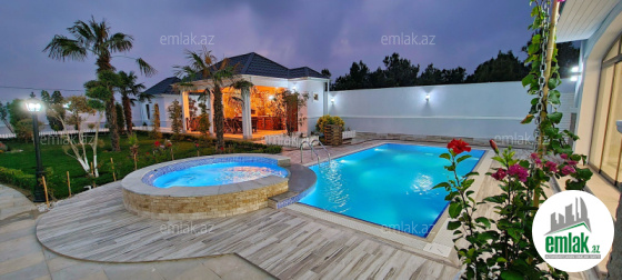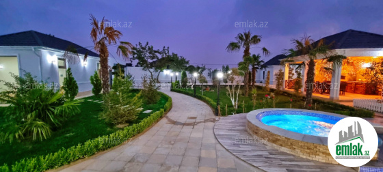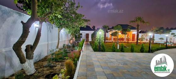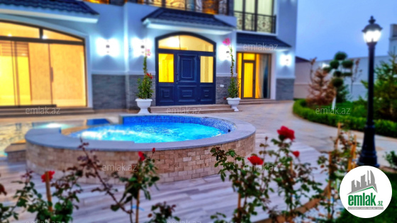 **RUFAT*AYNUR** Merdekan qes. QASTRONOM (kecmiş Məryəm) marketin yaxınlığında yerləşən 11 sotda neo klassik üslubunda yeni inşa edilmiş 2 mərtəbəli bağ evi satılır, 400 kv.m, 1 qonaq, 5 yataq, 5 san/q, qeniş mətbəx və önündə terras var, əla təmirli, isti döşəmə, pərdə və çılçıraqlar, kombi sistemi, qaz, içməli su xətti, işıq, divarlar sədəf boua ilə işlənilib, yuksek keyfiyyətlə təmir edilib, həyətində filtirli hovuz, söhbətqah, manqal, san/qovşağı, qaraj, su ambarı, yay və qış mətbəxi, jalyuz darvaza. Bağ evi daimi yaşayış olan massivdə yerləşir və il boyunca yaşamaq üçün yararlıdır. Cıxarışı var (kupca)