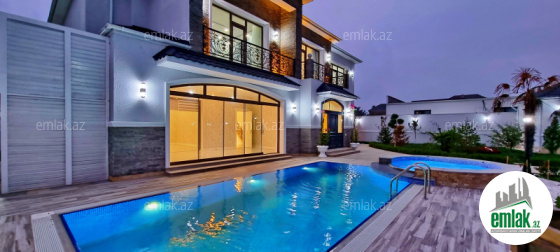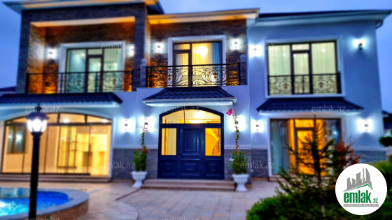 Продается новопостроенная 2х эт. дача в п. Мардакан, недалеко от QASTRONOM маркета, в жилом массиве, в стиле нео классика, 11 сот, 400 кв.м, гостинная, 5 спален, 5 сан/у, большая кухня, терраса перед кухней, качевственный ремонт, декоративная штукатурка стен, отличный проект, теплый пол, отоп.система комби, газ, питьевая вода, свет, люстры и занавеси, бассейн с фильтром, мангал, летняя и зимняя кухня, сан/узел, амбар для воды, ворота жалюзи. Дом пригоден для круглогодичного проживания. Купчая.